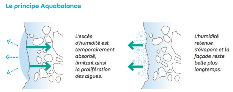L’enduit de parement Aquabalance, protège façade ET environnement. Weber a développé une alternative aux biocides en créant l’enduit de finition weber maxilin silco aquabalance. La technologie aquabalance, permet une protection naturelle de la façade, non plus à l’aide de substances chimiques mais avec une action physique. Dorénavant, il existe un moyen vertueux de pérenniser l’esthétique des bâtiments en protégeant la façade contre les algues et les champignons. Pour en savoir plus :