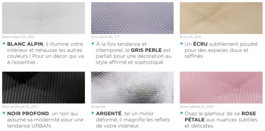 La gamme standard se compose de 6 couleurs tendance :
