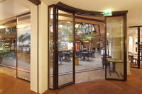 Les portes automatiques coulissantes demi-cintre (SC) et plein-cintre (SCR) font partie de la gamme d’entraînements Slimdrive qui ont pour avantage une hauteur d’encombrement de seulement 7 cm, ce qui permet de grandes hauteurs de passage (jusqu’à 3000 mm) et une intégration parfaite dans les façades de bâtiments, de manière à les rendre pratiquement invisibles. La zone d’entrée d’un bâtiment représente non seulement un élément fonctionnel, mais également un objet décoratif car il laisse une impression générale sur tout le bâtiment. Avec l’entraînement Slimdrive, les façades paraissant étroites deviennent spacieuses. De plus, nos portes Slimdrive SC/SCR, associées à de très larges éléments vitrés, permettent à la lumière de circuler librement, créant une atmosphère accueillante. Notre multiplicité de variantes permet d’offrir la solution optimale pour tous les bâtiments et leurs entrées : 2 ou 4 vantaux, installations convexes ou concaves, raccordements latéraux et supérieurs au béton, au mur, à l’ossature en acier, à la construction en verre ainsi qu’à la conception à montants et traverses. Les vantaux fixes et mobiles peuvent être dotés de profilés d’encadrement fins ou de systèmes de ferrure GEZE GGS (tout-verre). Les vantaux mobiles sont accrochés respectivement par deux supports sur le chariot. Le guide au sol est également fixé par des supports par point sur le verre. Conforme à l’article CO48 (ouverture intrinsèque mécanique en cas d’urgence), notre Slimdrive SC/SCR répond ainsi aux normes européennes et françaises en vigueur pour les ERP, les lieux de travail, les aéroports et gares, mais aussi les nouvelles constructions, les transformations et les rénovations de bâtiments. Le programmateur avec affichage digital intégré permet les fonctionnements automatiques, ouverture permanente, réduite ou plus longue, sens unique et nuit. De plus, pour la sécurité des personnes, la force de fermeture et d’ouverture est réglable tout en étant inférieure à 150 N. Le système, équipé de dispositifs de sécurité, permet une ouverture centrale couvrant la largeur de passage (de 1000 à 2500 mm) pour un poids maximum de 100 kg par commandes volontaires ou involontaires (bouton-poussoir, télécommande hyper-fréquence, détecteur de mouvement, interrupteur radar sans contact, etc.) Les parois vitrées peuvent être livrée en version ISO energy-efficient haute sécurité et l’ouverture coulissante de la porte peut être munie de verrous additionnels pour renforcer la sécurité. Une platine feu de raccordement 24/48 V peut également être câblée au système de détection incendie. En comparaison avec les portes coulissantes linéaires, les portes coulissantes plein-cintre et demi-cintre offrent une ouverture jusqu’à 40 % plus grande. Pour en savoir plus :