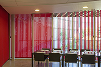 Modulation de la lumière à 180º Les stores à bandes verticales permettent un contrôle précis de la lumière en deux mouvements: ouvrir/fermer et orienter. On actionne les lames par un simple geste en fonction de l’orientation du soleil, pour un confort visuel et thermique maximal. Les lames (de 89 et 127 mm) ont un espace de séparation adéquat entre elles. Lorsque le store est fermé le chevauchement entre les lames permet de protéger complètement de l’impact de la lumière et de la chaleur. Il s’agit de systèmes très versatiles qui d’adaptent aux grandes ouvertures, hauts plafonds et superficies irrégulières comme les dénivelés, corniches, escaliers et espaces courbes. |