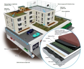 Système complet d’étanchéité avec gestion intégrée d’eau de pluie pour toitures-terrasses accessibles et inaccessibles (1979)